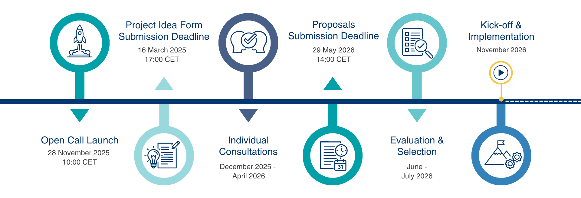 Project Idea Forms must be submitted by 16 March 2026 17:00 CET. We reserve the right to contact and consult only those applicants who submit complete and full information in the Project Idea form. While submitting the Project Idea Form and undergoing the consultation are mandatory steps, these are not subject to evaluation. We will evaluate only complete full proposals that were submitted via official tools within the indicated deadline.